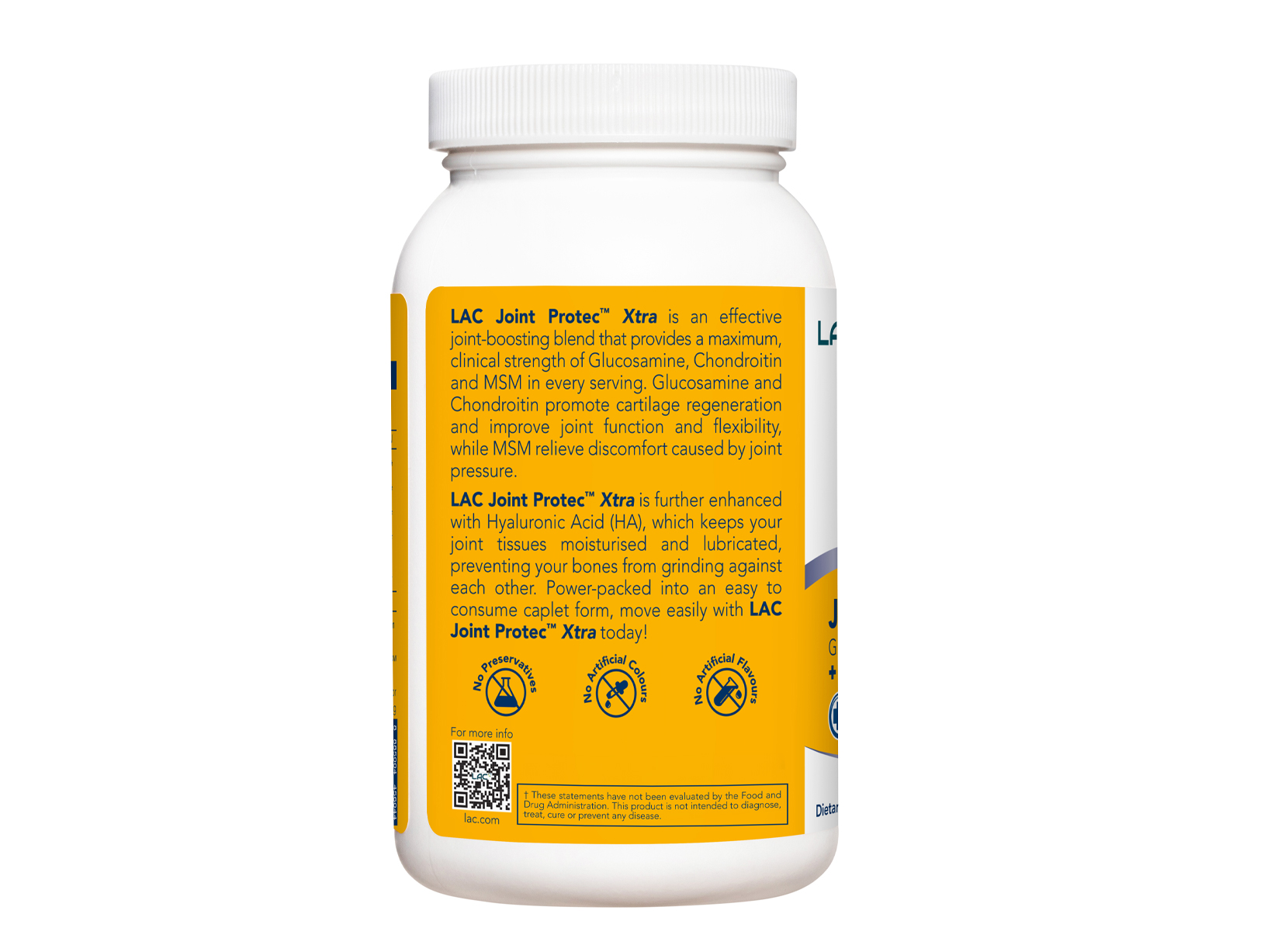 LAC Joints Joint Protec® Xtra – Glucosamine Chondroitin + MSM + HA (120 caplets)