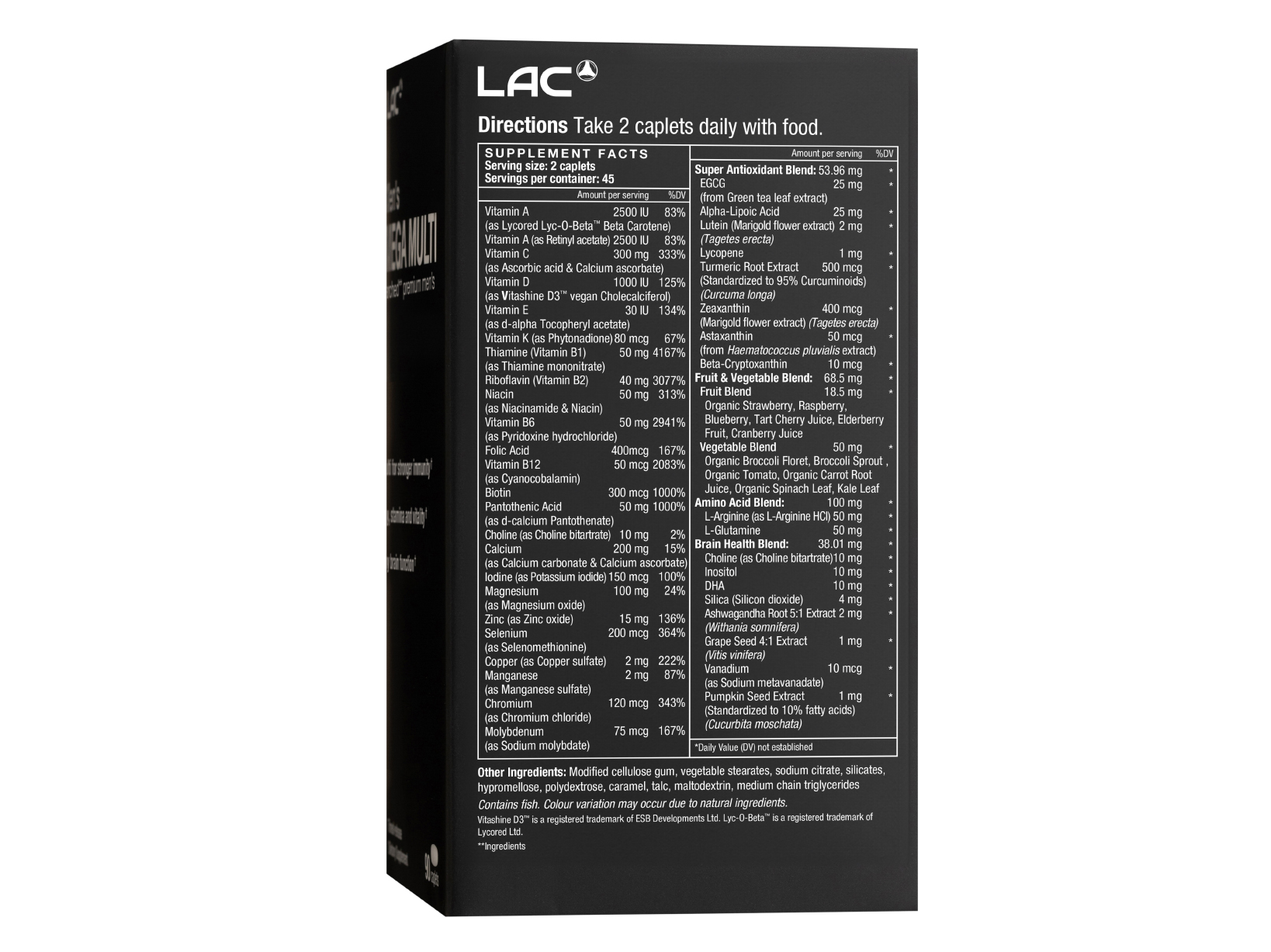 Vitashine D3™ is a registered trademark of ESB Developments Ltd. Lyc-O-Beta™ is a registered trademark of Lycored Ltd.