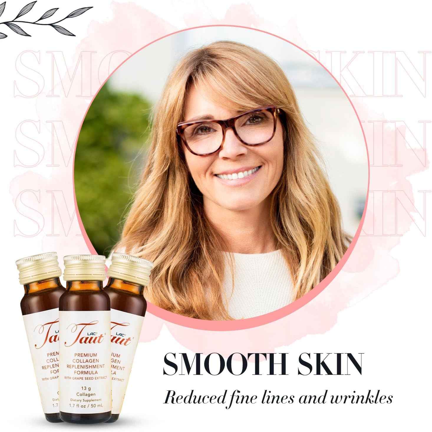 LAC Taut® Liquid Collagen for Women – 13g Marine Collagen Drink with Hyaluronic Acid, Grape Seed & Elastin – Visible Skin, Hair & Joint Support – 1 Box (50ml x 8 Bottles Each)